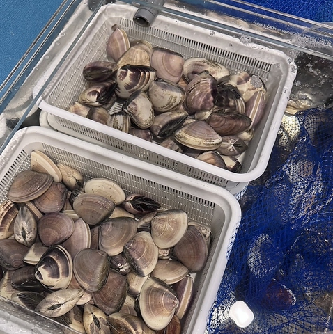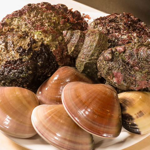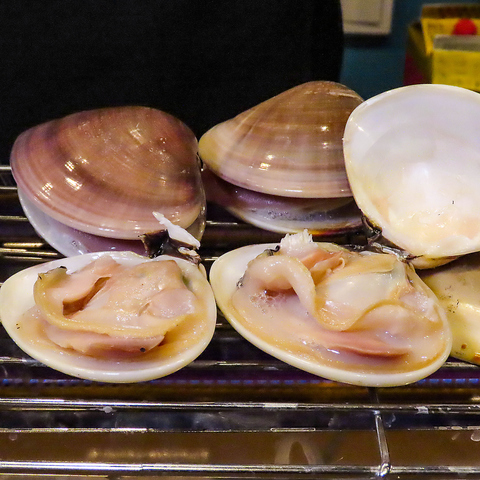 九十九里の漁師から仕入れた新鮮な貝を店内の水槽で大切に保管しているため直前まで生きた状態で提供します