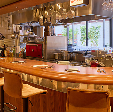 シェフの技を目の前で楽しめるカウンターは特等席◎デートやお仕事帰りのサク飲みにもぴったりな大人の空間