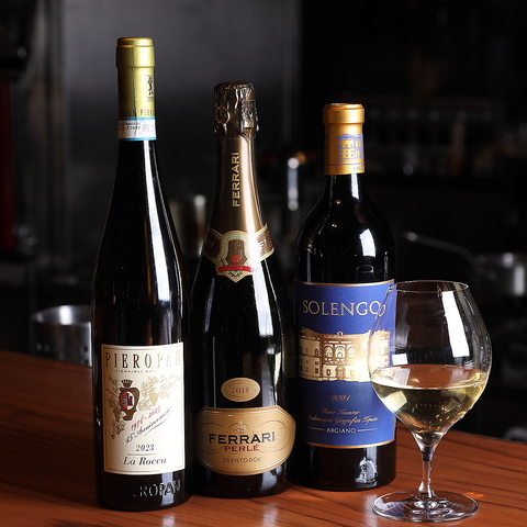 イタリア産を中心に、世界各国から厳選したワインを豊富に取り揃えています。お好みのテイストやその日の気分に合わせて、ソムリエが最適な一杯をご提案いたします。グラスワインも多彩にご用意しているので、いろいろな銘柄を飲み比べして楽しむのもおすすめです。