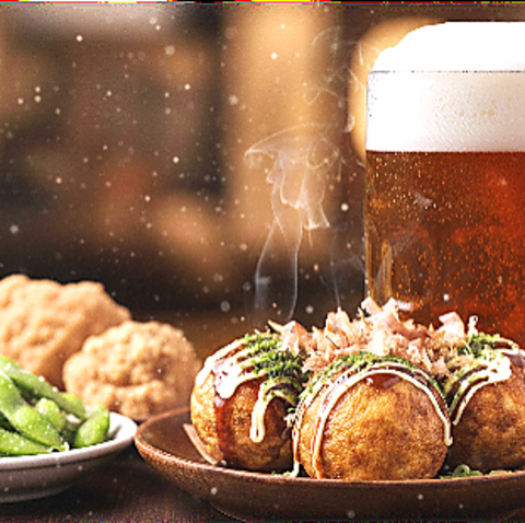 味を選べて楽しめるたこ焼き・焼きそば、定番のとん平焼き、唐揚げからカプレーゼまで揃った全9品と90分飲み放題が付いたボリューム満点のコース◎ご宴会はもちろん、ご家族連れにも最適で、様々なシーンでご利用いただけます!