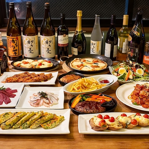 ワイン(赤・白)や日本酒、生ビール、ハイボール、サワー、カクテルまで幅広く楽しめる充実の飲み放題!これだけのラインナップを1500円で追加できるコスパ抜群の内容です。料理に合わせてお酒を選べるので、お酒好きの方にも満足いただけます。飲み会や宴会にもぴったり!