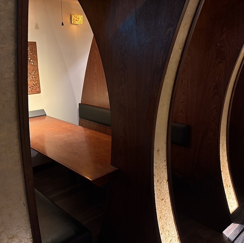 【プライベート感溢れる個室】周囲を気にせず過ごせる落ち着いた雰囲気の半個室もご用意しております。2名様用で、大切な人との語らいや大人のデートにご利用いただけます。温かみのあるお席で、こだわりの料理をお楽しみください◎