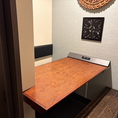【プライベート感溢れる個室】周囲を気にせず過ごせる落ち着いた雰囲気の半個室もご用意しております。2名様用で、大切な人との語らいや大人のデートにご利用いただけます。温かみのあるお席で、こだわりの料理をお楽しみください◎