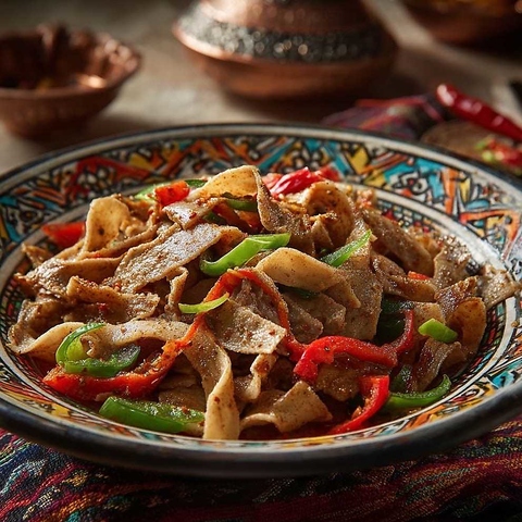 ウイグル料理を代表する定番中の定番、羊肉串(カバブ)です。厳選されたジューシーなラム肉を特製のタレに漬け込み、串に刺して豪快に焼き上げます。炭火で焼くことで肉の旨みがギュッと閉じ込められ、外は香ばしく中はふっくらとした仕上がりに。スパイスの香りが食欲を刺激し、お酒が進むこと間違いなしの逸品です♪