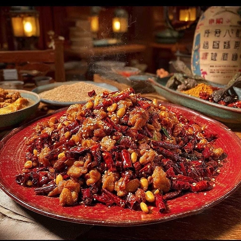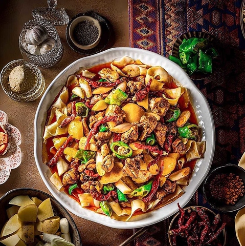 ウイグル料理店でも人気を博す激辛の逸品です◎唐辛子と花椒を大量に用いて、鶏肉をカリッと揚げてから香ばしく炒めます。山のように積まれた唐辛子の中から、旨みたっぷりの鶏肉片を探して食べるのがこの料理の醍醐味♪刺激的な香りと辛さは、一口食べれば病みつきになること間違いなし!ご来店の際はぜひご注文ください。