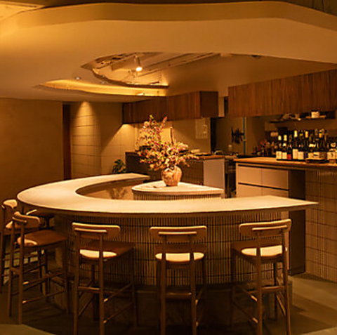 総席数24席のおしゃれな空間。職人の技を眺めつつ、厳選アラカルトとワインをゆっくりと
