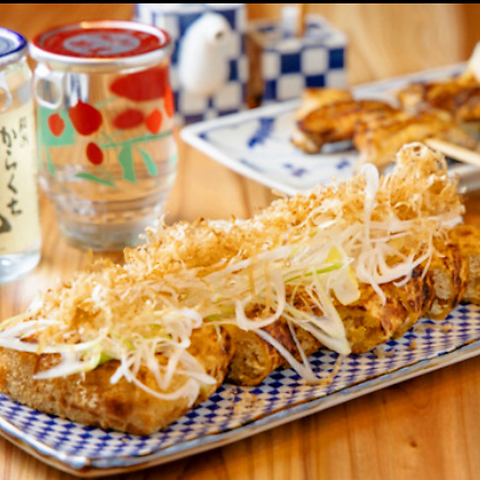 オーナーの地元である新潟県長岡市から仕入れる、名物「栃尾の油揚げ」は、当店の焼鳥と並ぶ人気メニューです。分厚い油揚げを香ばしく焼き上げ、外はカリッと、中はふっくらとした独特の食感を生み出しています。お酒の肴にぴったりで、特に新潟の厳選日本酒と合わせると格別です。