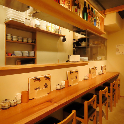 備長炭の香りと職人技を堪能できる、臨場感あふれる1階カウンター席!1階には6席のカウンター席を設けております。目の前には紀州備長炭の焼き台があり、鶏肉が焼ける香ばしい匂いと、店主の丁寧な仕事ぶりを間近で感じられるライブ感が魅力です。焼き立ての味を心ゆくまでお楽しみくださいませ。
