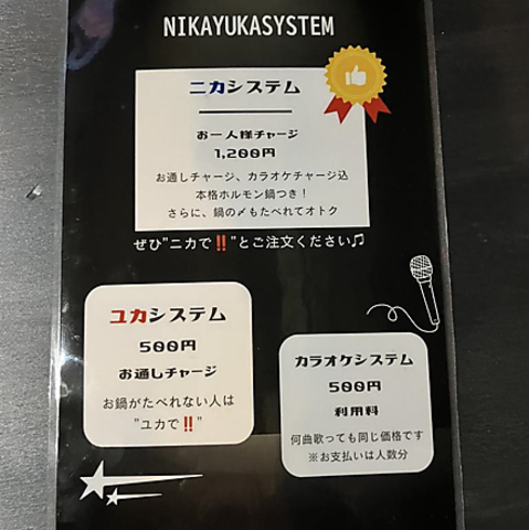 | 店名 | 肉刺しとホルモン鍋とカラオケとBAR ニカいからユカい |