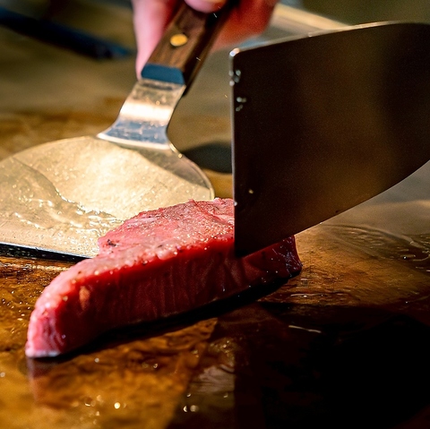 1. 黒毛和牛炙り寿司/2. 黒毛和牛ローストビーフ/3. 季節の逸品/4. 黒毛和牛ハンバーガー~季節のムース添え~/5. 蝦夷鮑の鉄板焼~バタークリーム醤油~/6.丸ごと一尾イセ海老の鉄板焼/7.お口直し/8.A5黒毛和牛ステーキ(各種グレードアップ可能)9.ガーリックライス10.季節の甘味