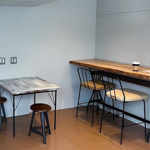 落ち着いた雰囲気のテーブル席やカウンター席が並ぶこの空間は、友人との会話や仕事の合間に最適です。大きな窓から差し込む自然光が心地よく、温かみのあるインテリアがリラックスした時間を演出します。さらに、おしゃれな照明と緑の植物がアクセントとなり、居心地の良い空間で特別なひとときをゆったり楽しめます!