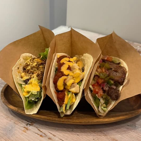 当店のおすすめタコスセットは、人気のメニューが一度に楽しめるお得な内容です。チーズとチリコンカンが絶妙に絡み合ったタコス、ジューシーなBBQビーフ、そしてサルサとチーズが引き立てるチキンタコスが各1個ずつ入っています。さまざまな味わいを一口ずつ堪能できるので、友人や家族とシェアするのもおすすめです!