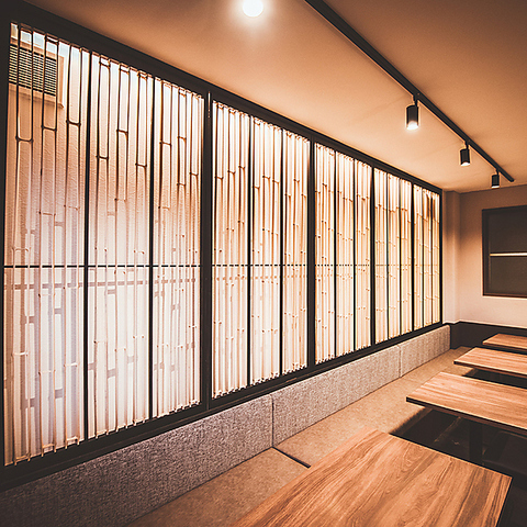 和の落ち着きとモダンな雰囲気の店内は、カウンター席からテーブル席、フロア貸切まで幅広いシーンに対応!