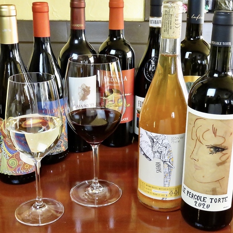 約50種のイタリアワインを常時ご用意。お手頃から希少銘柄まで、その日ぴったりの一本に出会えます。