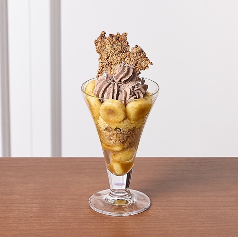 店仕込みのパフェは、ラム酒でふんわり香りづけ。濃厚チョコと完熟バナナがたっぷりで、ボリュームも満点。ちょっと大人な甘さと贅沢感が味わえる、満足感抜群のデザートです。
