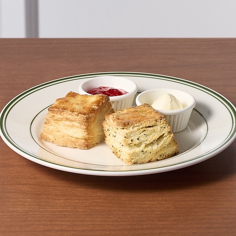 シェフがフランスで修行を重ねた本格派。プレーン・アールグレイ・オレンジの三種から選べ、当日朝に焼き上げたばかりの香ばしさとほのかなバターの風味が楽しめます。焼きたての熱々&サクふわ食感がたまりません。