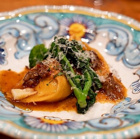 もっちりとした自家製トルテリーニの中には、とろけるような口当たりの濃厚チーズがたっぷり。素朴で滋味深い土ごぼうのボロネーゼソースを絡めました。イタリア伝統のパスタと日本の食材が融合した、奥深い味わいをご堪能ください。