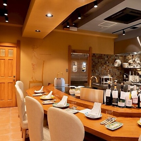 調理風景を眺めながら、お食事やお酒を楽しむことができるカウンター席。ご夫婦やご家族での特別なひとときにぴったりです。