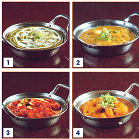 カレー(メニューの中から)、ナン又はライス、サラダ、ソフトドリンク