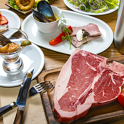 当店自慢のステーキには、Tボーンやリブアイロールなど、世界中の高級ステーキレストランで使用されるグレードのブラックアンガスビーフを厳選し、長期熟成させています♪臭みがなく、肉本来の旨味が凝縮されたアメリカンな赤身熟成肉の美味しさを存分にご堪能いただけます。本格的なステーキの味をお手頃な価格でお楽しみください!