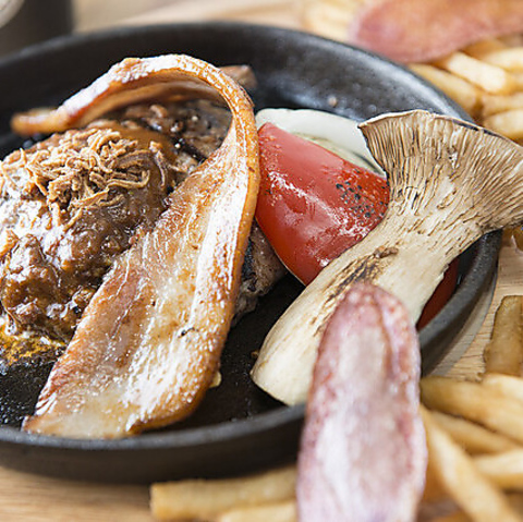 トッピングを組み合わせると、ほぼ無限のテイストが楽しめるハンバーガーやハンバーグも大人気です。