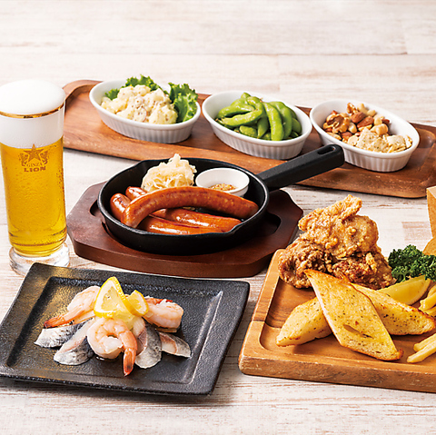 飲み放題でライオンの美味しい生ビールが楽しめるのは、大崎では当店だけ!他所では飲めない最高の生ビールで素敵なお時間をお過ごしください。昼からご利用いただけますので、昼飲みや昼宴会、1人飲みに!