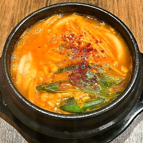 寒い季節はもちろん、一年を通して人気のスンドゥブチゲ♪マイルドな辛さの中に、魚介や野菜の濃厚な旨味が溶け込んでおり、ご飯が進むこと間違いなしの美味しさです!中に入った豆腐のふわとろ食感がたまらない、心も体も温まる一品です。