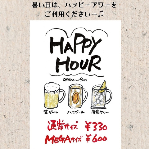 【HAPPY HOUR】OPEN~19:00