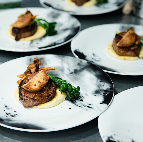 旨みの濃い国産牛を丁寧に焼き上げ、ロッシーニ風に仕立てた贅沢な一皿。濃厚なソースと重なり合うコクが、口に運ぶたびに広がります。記念日や特別な夜にふさわしい、主役級の逸品です。料理そのものが主役となる演出は、ライブ感にあふれ、食事の時間を特別な体験へと昇華させます。大切な人との一夜にもおすすめです