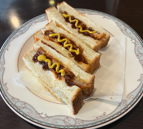 揚げたてのカツをサンドしてオリジナルソースを添えたまじょりかの看板メニュー。