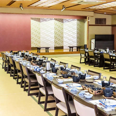 最大16名様まで予約可能なテーブル席を備え、ご家族や大切なお祝い、記念日におすすめです。昼でも夜でも可能な飲み放題もあり、ご宴会にも最適。食事処でのお食事後、日帰り入浴ができる御膳ランチや会席プランもご用意しています。広々とした店内で美しい景色とともに、心に残る特別な時間をお過ごしください。