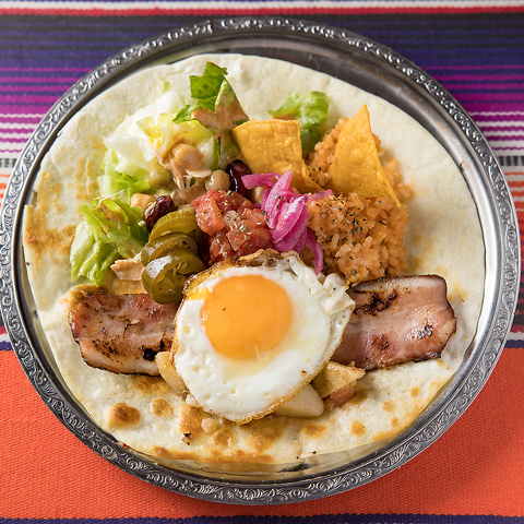 スペシャル1180円(税込) ジューシーに焼き上げた厚切りベーコンの塩気と、目玉焼きのまろやかさが絶妙なバランスを奏でます。新鮮な野菜のシャキシャキ感と、トマトサルサがアクセントになり、飽きのこない味わいに仕上げました!