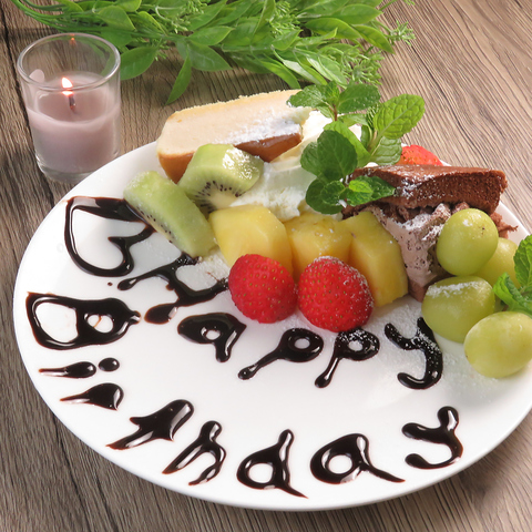 記念日や誕生日におすすめのバースデープレートが当店で利用可能!クーポンを使えば無料でご提供します。大切な人へのサプライズに最適。華やかな演出で思い出に残る時間をお過ごしください。
