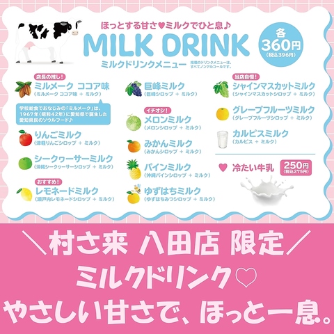 【 村さ来 八田店 の ミルク ドリンク メニュー♪ 】 お子さまでも安心、ノンアルコール ミルクドリンク