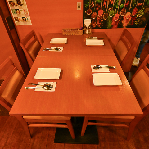 普段使いに便利な4人掛けのテーブル席を多数ご用意しており、少人数のグループからご利用いただけます。友人とのランチやディナーはもちろん、お子様連れのママ会にも最適です。席の配置を柔軟に変更することも可能です。本格的なネパール・インド料理を、気の置けない仲間と気軽にお楽しみください♪