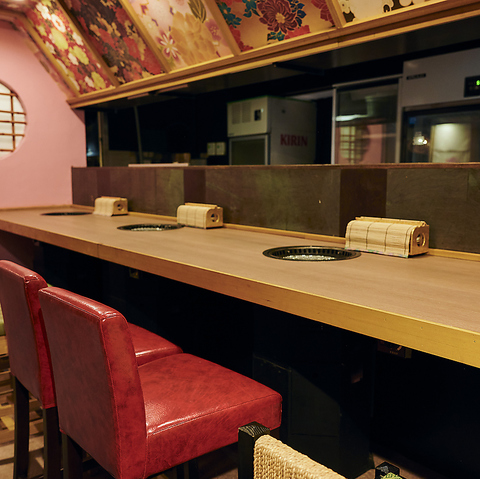【カウンター席】デートや接待、お一人様にもゆったりとお過ごしいただけるカウンター席。洗練された和の空間と、当店自慢の極上和牛を心ゆくまでご堪能ください。皆様のご来店心よりお待ちしております。