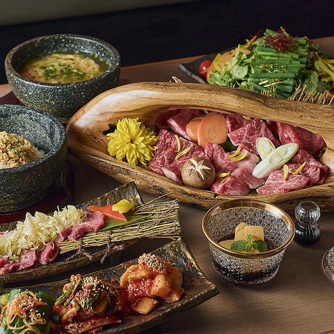 厳選和牛の盛りあわせをはじめ、〆やデザートまでついた焼肉コース。
