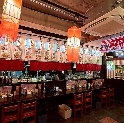 提灯が揺れる店内は、まるで毎日が昭和レトロの横丁のような賑やかさです♪焼肉に粉もの、さらに韓国グルメまで一度に味わえる、食のテーマパークのような空間です。昭和レトロな雰囲気は写真映えも抜群!わいわい賑やかな店内で、食べたい料理を好きなだけ囲む幸せな時間です♪今夜は時間を忘れてとことん盛り上がりましょう!