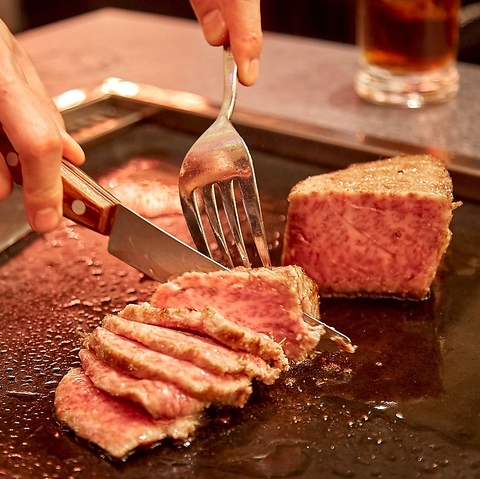 ボリューム満点なお肉の圧倒的な迫力をお楽しみください!自分好みの焼き加減に仕上げ、自家製ソースで味わえば幸福感で満たされます♪お供には全種類揃った「鬼おろし」が相性最高です!最大120名様まで入れる広々とした店内なので、会社の宴会や大人数で集まる時も安心◎お腹も心も満たされるひとときをお過ごしください。