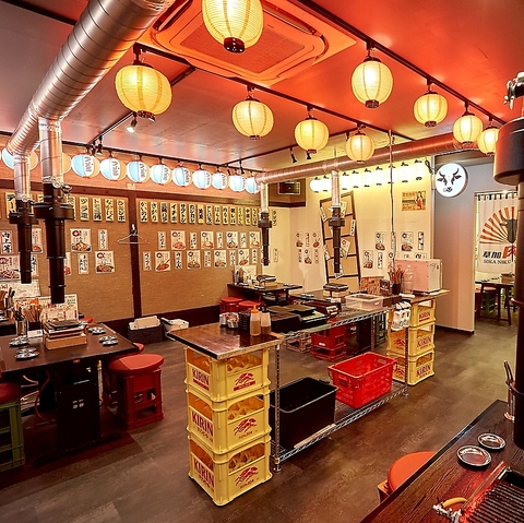 【昭和レトロな雰囲気が漂う横丁をイメージ】提灯が飾られまるで酉の市のような賑わいと活気に満ちた店内は、ワイワイと賑やかな空間で、元気をもらえること間違いなし◎一つの店舗で焼肉、もんじゃ、韓国料理の3つの味が楽しめるのが最大の魅力です!あれもこれもを楽しめちゃう欲張りな空間です♪