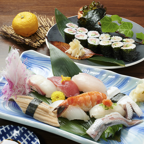 毎日新鮮な食材を仕入れ、手間と時間をかけて熟成。目利きが選んだ極上のネタを目の前で握る、自慢の鮨です。鮮度にこだわり、最も美味しい状態でお客様にご提供いたします。風味豊かな鮨はお酒との相性も抜群。店主が厳選した地酒とともにお楽しみください。豪華な「上ネタ八貫(1,100円(税込)~)」がお得でおすすめ。