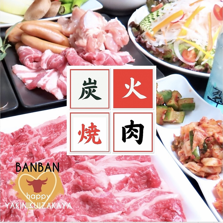 炭火焼肉コースはプレミアムモルツ生ビールOKの飲放も付いたばんばんおすすめは4500円(税込)プレミアム2時間飲み放題コース!!全てのコースに+390円でご飯・キムチ・サラダなどの食放がクーポンご利用で付けれます!◎また焼肉なしの居酒屋2時間飲み放題コースは3300円(税込)~5000円(税込)ゆったりとした座敷で盛り上がっても安心!!