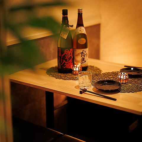 間接照明の効いた店内は落ち着いた大人の宴会に最適な空間となっております。全席個室席となっておりますので、周りを気にすることなくお過ごしいただけます。梅田での飲み会や宴会はもちろん、デート、接待、歓送迎会などにもおすすめ!お席のみのご予約も承っております。