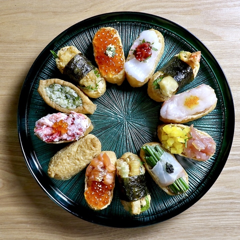 柳橋市場内にあるお店なので鮮度◎新鮮素材をいなりに贅沢にトッピングしました!