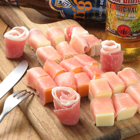 ヨーロッパを中心とした世界各国のチーズや燻製したピーナッツ、ハムをご用意しています!