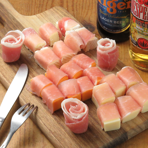 ヨーロッパ中心に集めた各国のチーズと生ハムを、その日のイチオシで5点盛り合わせ!「どれにしよう?」と迷ったら、まずはこれを頼んでみてください。お手元のドリンクに合わせて、間違いない最高の組み合わせをご提供します。色々な味を少しずつ楽しみたい方に超おすすめ!