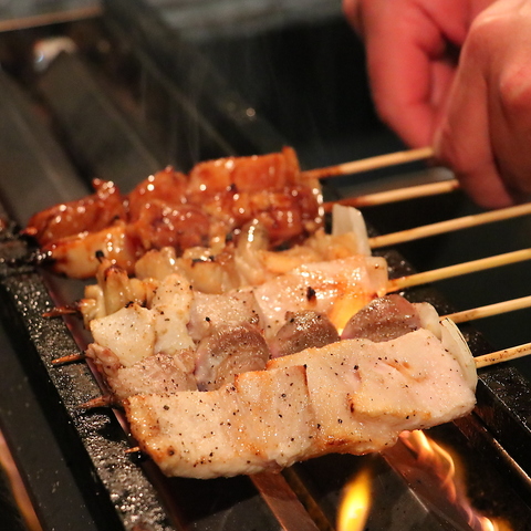 串焼きは店内で一本一本丁寧に串打ちし、一本に魂を込めています◎手間を惜しまない仕込みによって、素材の旨味が最大限に引き出されます♪さらに、代々受け継がれた秘伝のタレと、シンプルな塩にもこだわりあり!定番のとりや皮はもちろん、豚バラやささみ、女性に人気の高い野菜巻き串まで豊富にご用意しております◎