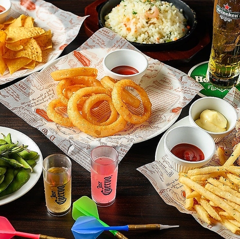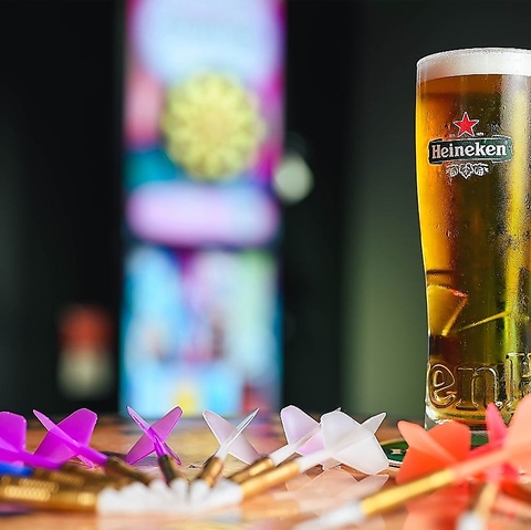 100種類以上のドリンクと30種類のフードがリーズナブルのお値段で味わえます♪大迫力のダーツマシンや、海外で話題のビアポンも完備!大人なの遊び場で朝までごゆっくりお楽しみください♪