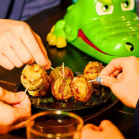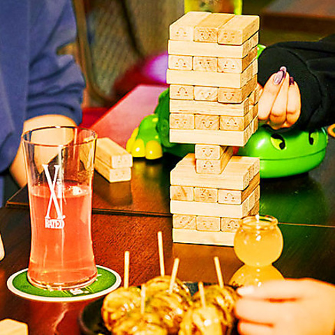 お酒に合う軽いおつまみからピザやパスタまで豊富にご用意しておりますので1軒目からのご利用も大歓迎です。ゲームを盛り上げるロシアンたこ焼きもいかがでしょうか!?