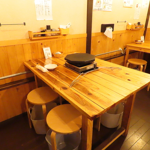 1階には、温かみのある手作りのテーブル席を4名様×2卓ご用意しています◎ご家族やご友人との食事に最適です。ゆったりと配置されたテーブルで、当店自慢の鶏焼き肉や逸品料理をご堪能ください。
